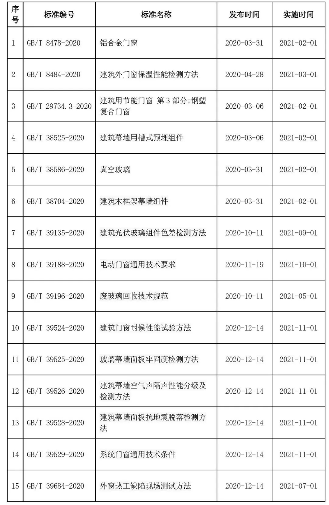 2021年最新幕墻門窗相關(guān)標(biāo)準(zhǔn)列表