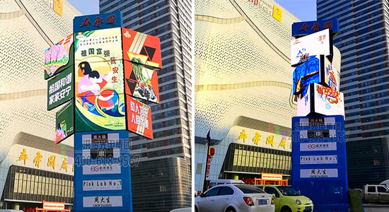 城市商圈是人流聚集區(qū)、擁有足夠的人流密度,消費(fèi)能力,中高端品牌重金投放的目標(biāo)方向。但廣告位簇?fù)恚嚨刭M(fèi)高昂,選擇合適的媒體形式至關(guān)重要。洪海智造魔方柱形式新穎,柱狀體造型獨(dú)特可定制,在諸多廣告牌中格外引人矚目,視頻與動(dòng)作完美配合,實(shí)現(xiàn)陣地廣告價(jià)值的全新升級(jí)。