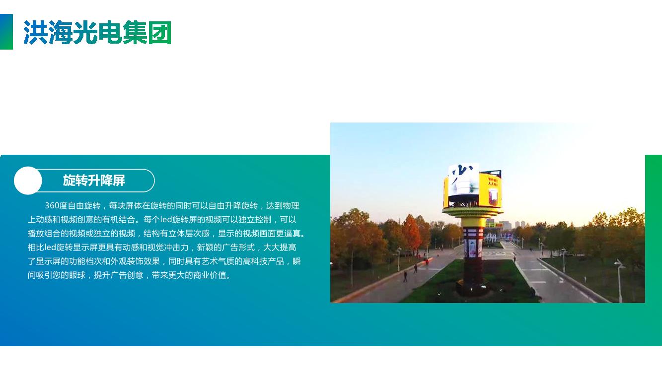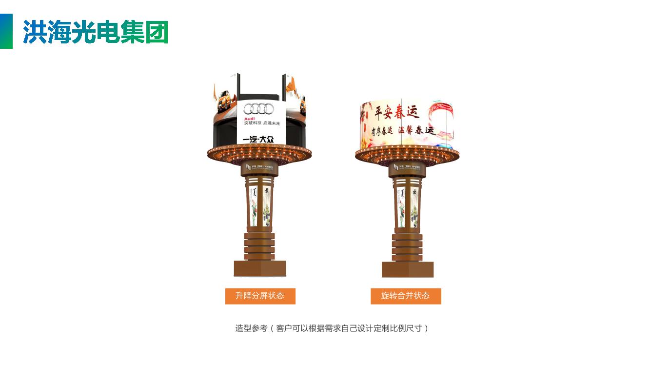 相比led旋轉(zhuǎn)顯示屏更具有動(dòng)感和視覺(jué)沖擊力,新穎的廣告形式,大大提高了顯示屏的功能檔次和外觀裝飾效果,同時(shí)具有藝術(shù)氣質(zhì)的高科技產(chǎn)品,瞬間吸引您的眼球,提升廣告創(chuàng)意,帶來(lái)更大的商業(yè)價(jià)值。